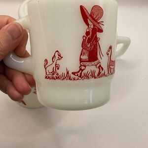 4 Holly Hobby Termocrisa milk glass mugs. Red and White Holly Hobby mug.
