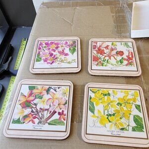 4 JILL WALKER'S FLOWERING TREES CORK COASTERS VIBRANT COLORS GUC SEE PICS BIN G