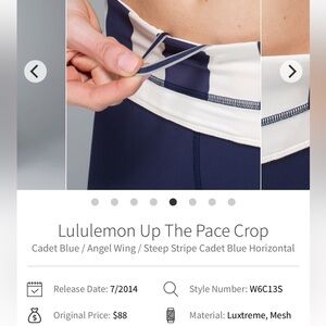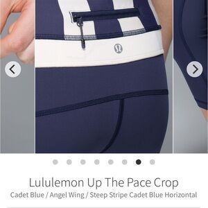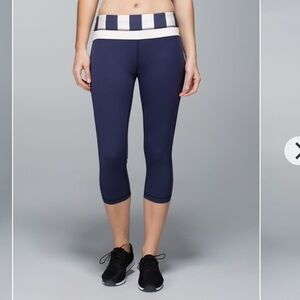 [4] Lululemon Women’s Up The Pace Crop Nautical Navy Blue & White Stripes