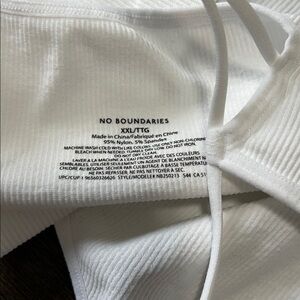 Stylish white ribbed crop top with spaghetti straps. Perfect for casual wear.