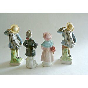 4 Occupied Japan Figurines Colonial Man and Woman & 2 Young Men Figurine Instant