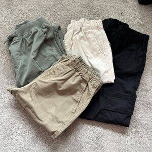 4 Pairs Boys Cotton Cargo Pants Light Beige, Tan, Black & Khaki Size 13 NWOT