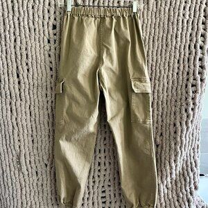 Boys' cargo pants, tan joggers, khaki joggers, adjustable waist, utility pants, cargo pockets, tapered leg, elastic cuffs, kids' pants, casual wear, school pants, back to school, school uniforms, outdoor play, neutral color, comfortable pants, boys' fashion