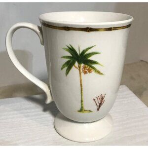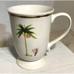 4 Palm Tree Ceramic Mugs Pedestal Base Gibson Dishwasher & Microwave Safe