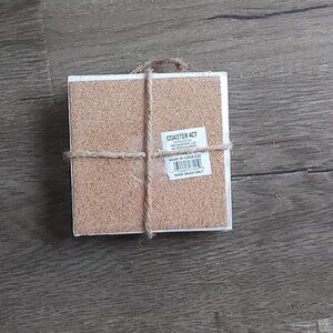 Nice stone coasters with hardboard backing. Painted white with a red snowflake.