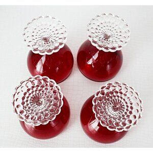 4 Royal Ruby Boopie Glasses Glass Stemware 1950's Vintage Anchor Hocking