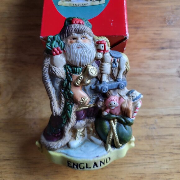 These 4 Santa's of the Nations porcelain figurines, depicting Santa Claus from China, Italy, France, and England, are a unique and collectible addition to your holiday decor. Hand-painted and featuring an asymmetrical shape, these small figurines stand at 4 inches tall and showcase a multicolor design. Manufactured in 1991 as part of a classic collection by RSVP, these international-themed figurines are perfect for teens and adults looking to add a touch of seasonal charm to their home.