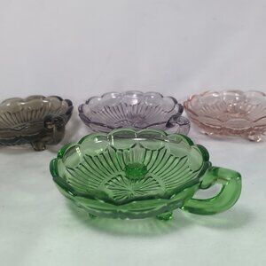 4 Set Depression Bowl Uranium Glass Pedestal Multicolor Black Green Pink Handle