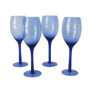 4 Vintage Cobalt Blue Wine Glasses Stem Wine Glass