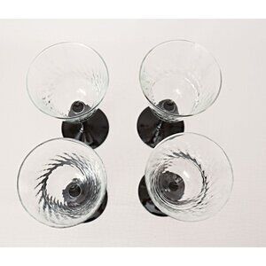 For your consideration is a vintage set of 4 clear optic swirl with black glass stem wine glasses by LUMINARC .The glasses are marked France and are in excellent vintage condition with no damage