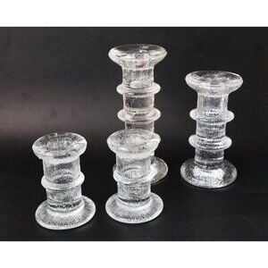 4 Vintage Luminarc Nordic Textured Glass Candle Holders Candlesticks Mid Century