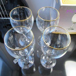 4 Wine Glasses Water Goblet with Gold Rim in Original Box Ancam Pasabahce Turkey