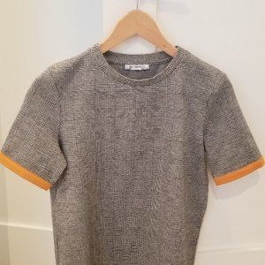 ZARA black white plad top with yellow mustard sleeves (size small)