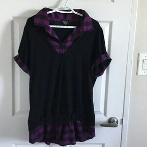 4 for 25 $ Digital Plus Black and Purple Plaid Accented Tunic Top - Size 3X