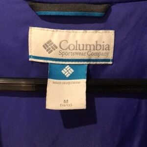 Girls size medium Columbia coat (10-12). Please see entire listing, in the pictures & video you can see where the rip is on the right sleeve.mblue & green coat, lots of zippers and coat is warm regardless of the rip. Price reflects damage.