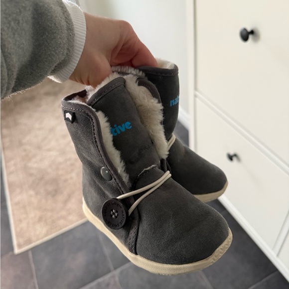 Warm boots with soft faux fur lining. Stylish and comfortable. Native brand sir 6 toddler. Vey gently used 4 items for $40