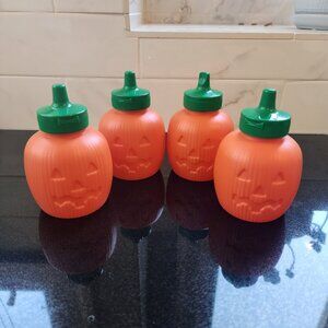 4 plastic pumpkin squeeze bottles/condiment bottles