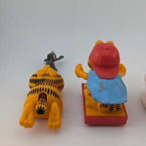 Delight in this collection of four vintage pull-back toys from the 1980s, featuring beloved characters Garfield and Odie. Produced by Playmates Toys in 1978 and 1981, these items capture the playful essence of classic Garfield memorabilia.