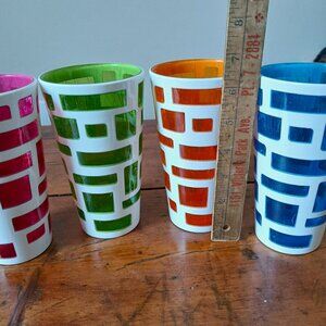tags: tumblers, picnic, retro, colourful, plastic, homeware, kitchen, crackle effect, immanuel, glasses
