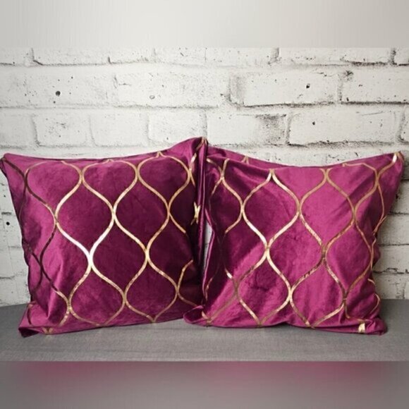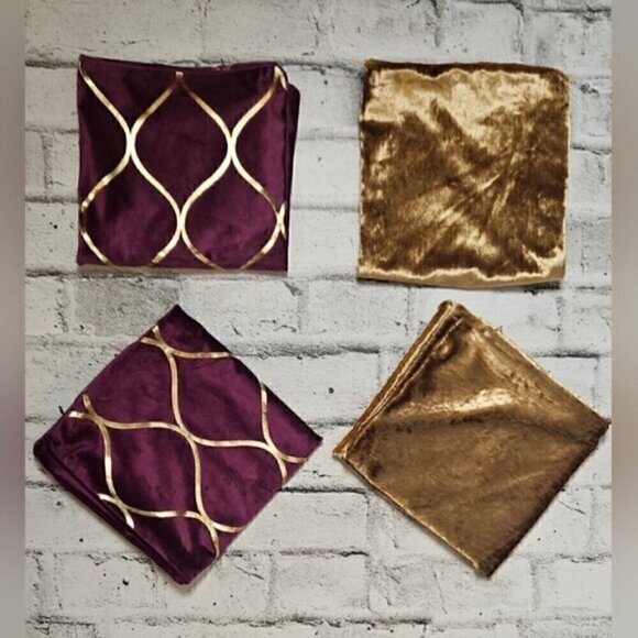 4 x Pillow Covers. 2 Super Soft Gold Velvet and 2 Super Soft Purple & Gold Velvet