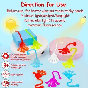 Before Use Squishy Slap Cute Toys For better glow put those sticky hands goodie bag stuffers in direct light to absorb maximum fluorescence. Then turn off the light and enjoy the glow. It will absolutely attract kids attention. Kids will be so happy to get this cute fun glow in the dark Valentine party supplies.