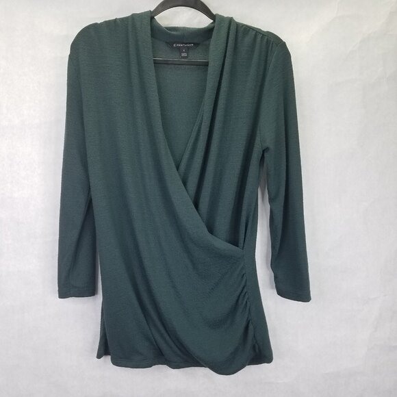 41 Hawthorn Faux Wrap Shirt Women's M Henri Surplice Ruched Knit Top 3/4 Sleeve