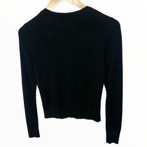 Stitchfix 41 Hawthorn Black Cardigan in Women's Size Small. 25% poly, 33% silk and 42% modal. Long sleeves. Crew neckline. Button front. Machine washable