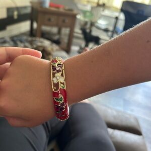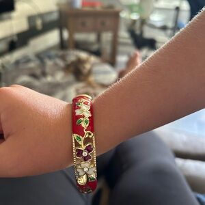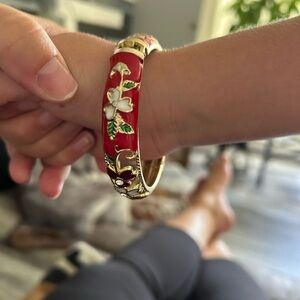 4/$100 Elegant Red and Gold Floral Bangle 8 inches 🎁