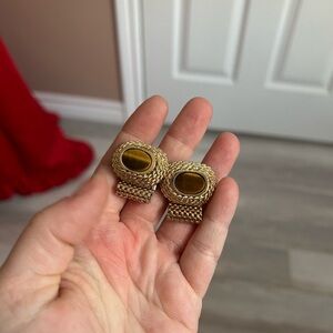 4/$100 Gold Mesh men vintage cufflinks with Tiger's Eye 👨