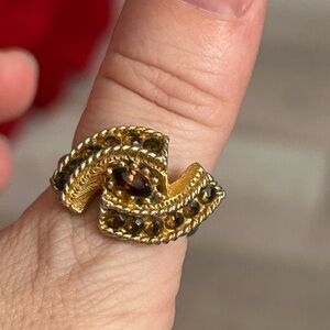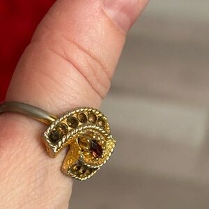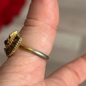 Condition: good, wearable, Selling as is, uncleaned.metal and stone untested. Some wear in band showing stainless steel silver from gold colour.