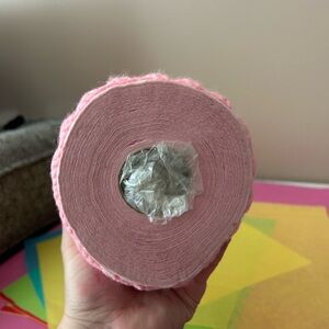 4/$100 bathroom toilet paper cover Pink Knitted Doll with Blue Accents 🌸
