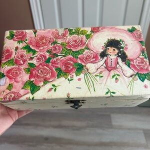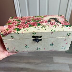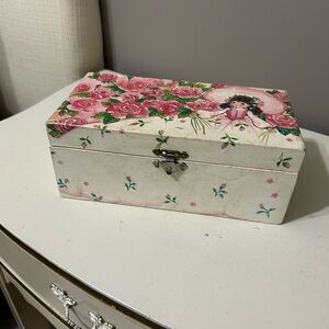 Charming jewelry box featuring a floral and doll design. Perfect for storing your treasures.