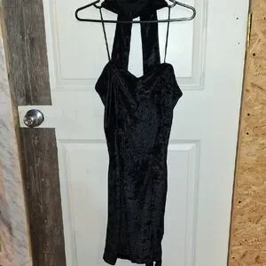 Turn heads with this chic black backless dress. Perfect for a night out, its sleek design offers both style and comfort