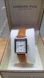 Stylish watch with a light brown leather strap. Rectangular silver case. with rosegold numbers Timeless London Fog design.