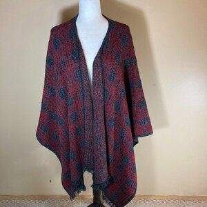 # 42 Michel Antoni Tricot Poncho Wrap Cape, Red and Black, Size OS/1x