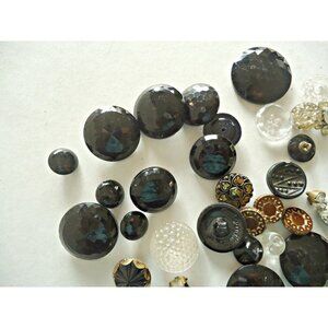 42 Vintage Glass Buttons & Rhinestone Buttons Collection Jet Black