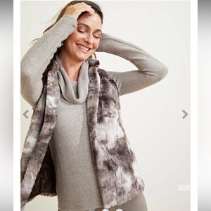 4/$20 Chico’s faux fur plush vest beige black with mandarin collar- size S- 4 US