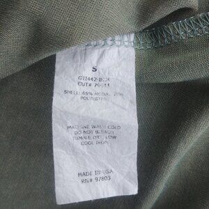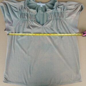 Very good used condition. Lots of different tints and shades throughout the top. Modal/polyester blend, made in USA.