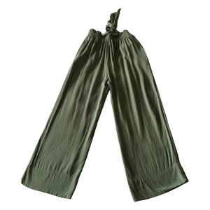 Halston High Paperbag Waist Wide Leg Trousers with elastic waist and tie belt in sage green.