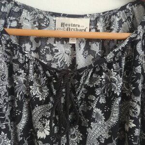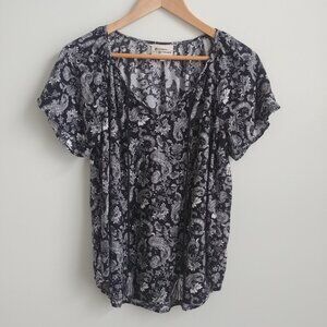 4/$20 Hester & Orchard lightweight rayon paisley black grey flowy top blouse