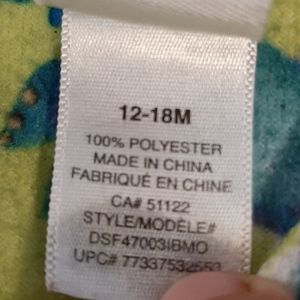Monsters Inc pajamas. Lime green with blue accents. Warm and soft material. Good used condition. No rips or stains. Material and care instructions in photos. Size 12-18m.