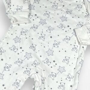 White Long Sleeve Bear And Star Print Sleeper
