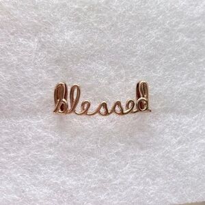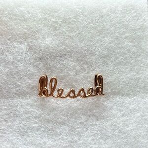 Rose gold script word “blessed”