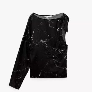 4/$20 Zara NWT Marble Effect One-Shoulder silk look blouse with knot - size XS