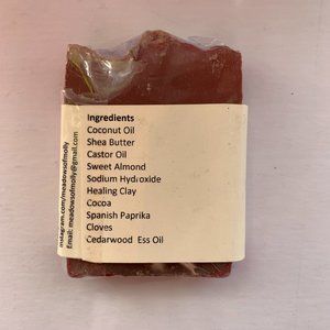 Introducing our luxurious organic soap, carefully crafted with a blend of premium ingredients to cleanse and nourish your skin like never before. This soap is made with only the finest natural ingredients, including coconut oil, shea butter, castor oil, sweet almond oil, healing clay, cocoa, Spanish paprika, cloves, and cedarwood essential oils perfect choice for anyone seeking a gentle, yet effective cleansing experience.