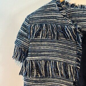 424 Fifth Lord&Taylor blue/white tweed fringe short sleeve jacket/blazer size 6