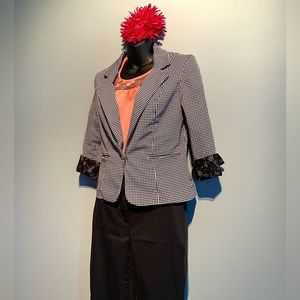 - Cartise plaid Blazer with 3/4 sleeves. Beautiful lace cuffs. Size 4 US (button needs to be sewed on)