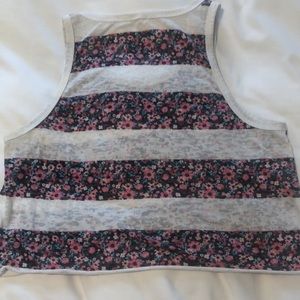 Alternating stripes of pink floral and white burn out make this cute crop a summer essential.