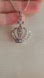 Pave encrusted clear and iridescent crystals crown pendant and facetted mini ball chain necklace.