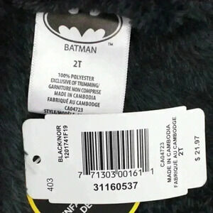 🎁4/$25 ~ NEW! BATMAN Plush Hooded Robe shiny black belted kids 2T and XS(4/5)